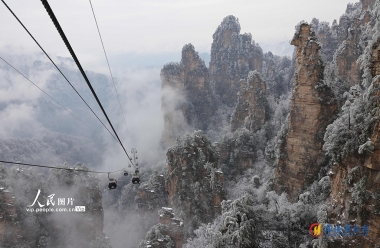 • 湖南张家界:云漫峰峦 冰雪添韵