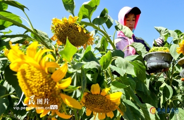 • 甘肃临泽:向日葵花盛开 沃野披上“黄金甲”