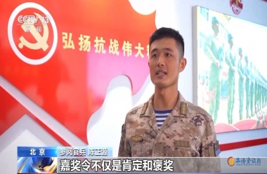 • 由80面抗战英模部队荣誉旗帜组成的战旗方队接受检阅