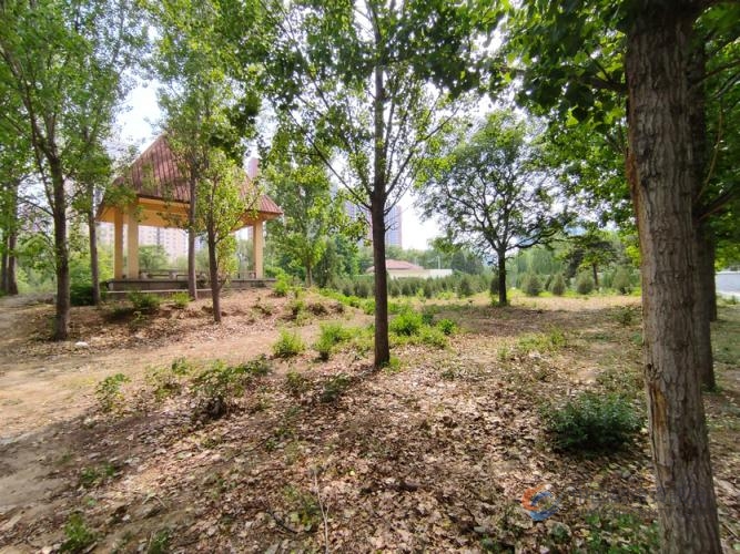 记者在公园里转了转,发现树丛中,有一处凉亭。通往凉亭的路,已经不清晰。凉亭的原色大约是黄色的,走近一看,内里已经掉色严重,漆面破损。凉亭边的松树,倒像是新种的,才一人多高。有工作人员在修剪松树边的杂草,据他说,公园早就不存在了,现在也没有恢复的迹象。