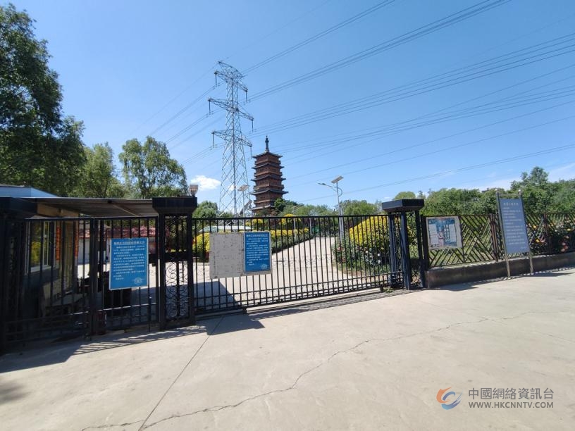从北门外往里看,公园道路平整,绿化完好,建筑也没有破损迹象。北门处有工作人员值守,也有内部人员进出。工作人员表示,他们也不知道公园何时重开。