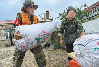 8月7日,黑龙江省哈尔滨市双城区万隆乡,陆军第78集团军某旅官兵帮助群众转运物资。 |