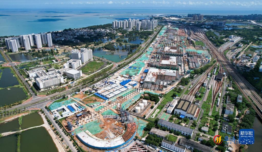 海口新海港和南港“二线口岸”(货运)集中查验场所建设项目(7月21日摄,无人机照片)。