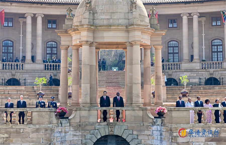 当地时间8月22日上午,正在南非进行国事访问的国家主席习近平在比勒陀利亚总统府同南非总统拉马福萨会谈。会谈前,拉马福萨在总统府广场为习近平举行欢迎仪式