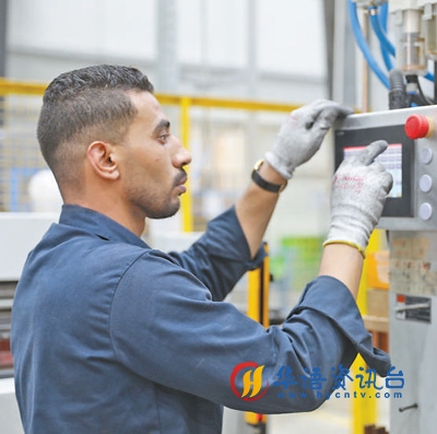 在中埃·泰达苏伊士经贸合作区内,当地工人在操作设备。 |