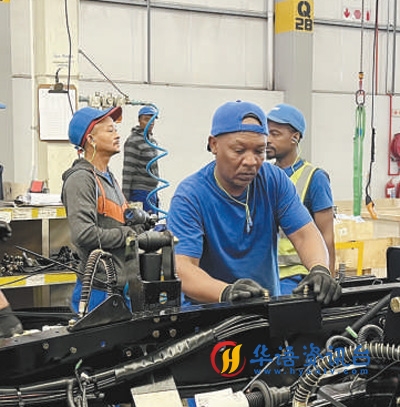 中国第一汽车集团有限公司南非库哈工厂生产线上,当地员工在组装车辆。 |