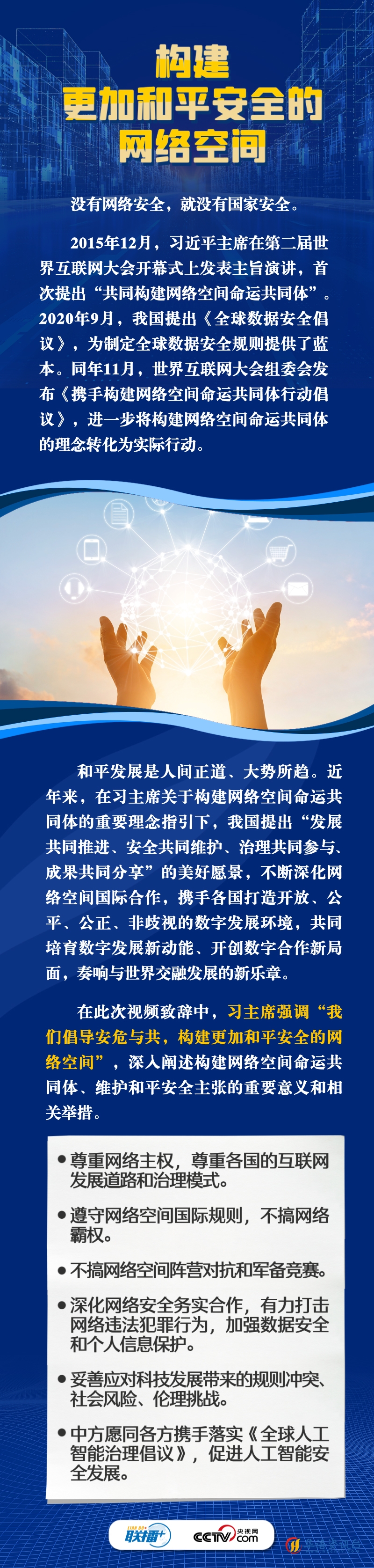 面对新的时代课题,习主席在此次视频致辞中倡导构建更加普惠繁荣、更加和平安全、更加平等包容的网络空间。这三个“网络空间”具体内容是什么?构建网络“新空间”有什么具体措施?央视网《联播+》与您一同学习。