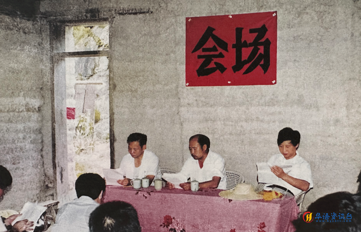 1989年7月,习近平(右一)在下党乡召开现场办公会。应他要求,乡党委书记杨奕周坐在中间。
