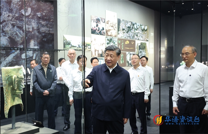 2023年7月26日,习近平总书记在四川省德阳市考察三星堆博物馆,了解当地历史文化遗址发掘研究、文物保护修复等情况。