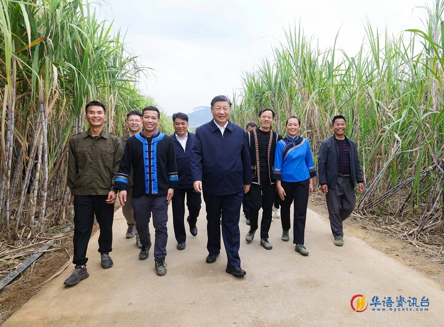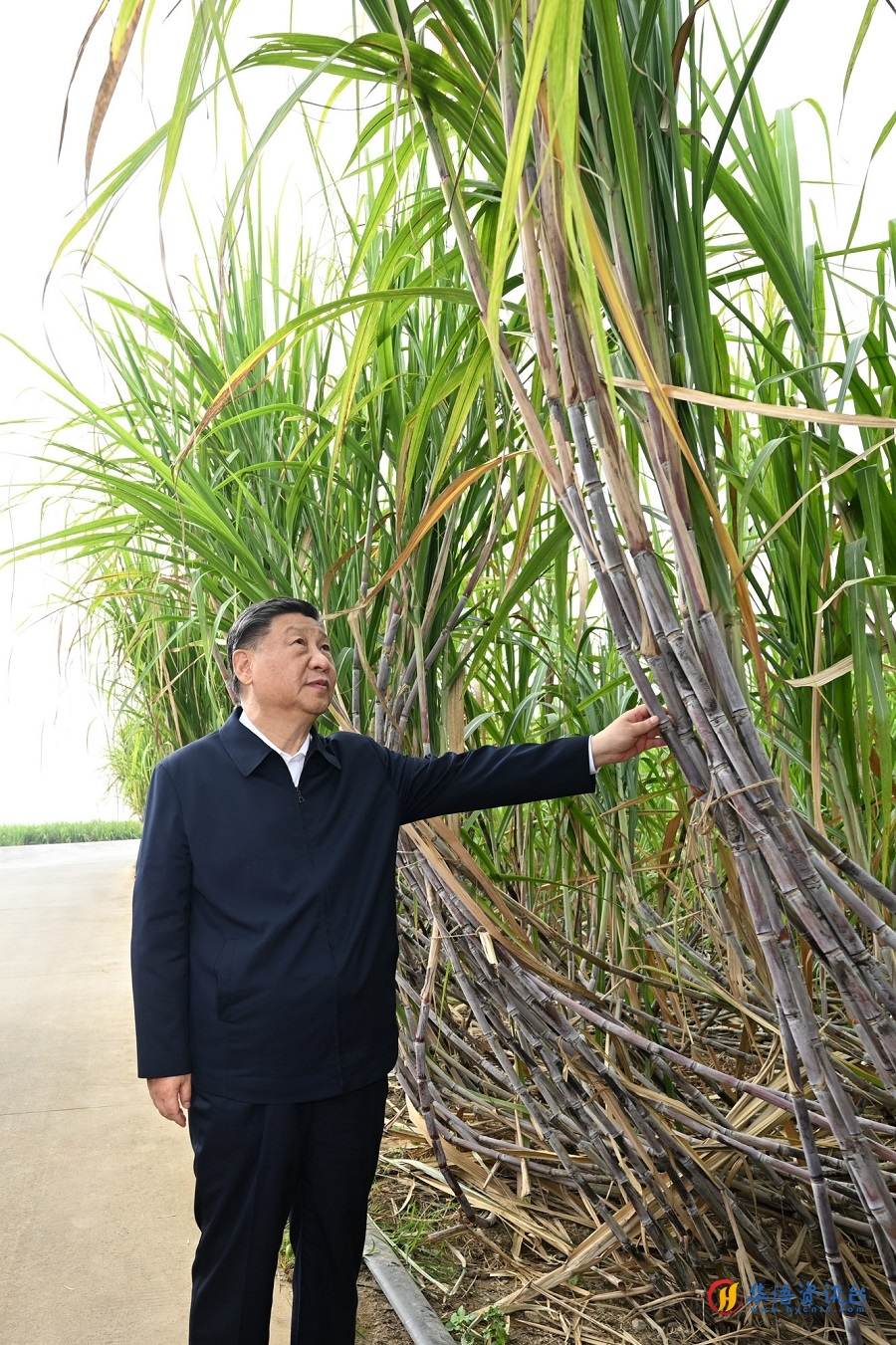 14日下午,习近平总书记在广西来宾市考察调研。他先后来到来宾市国家现代农业产业园黄安优质“双高”糖料蔗基地和东糖凤凰有限公司,了解甘蔗良种繁育、种植收成、糖产业发展等情况。(人民日报记者 徐隽)