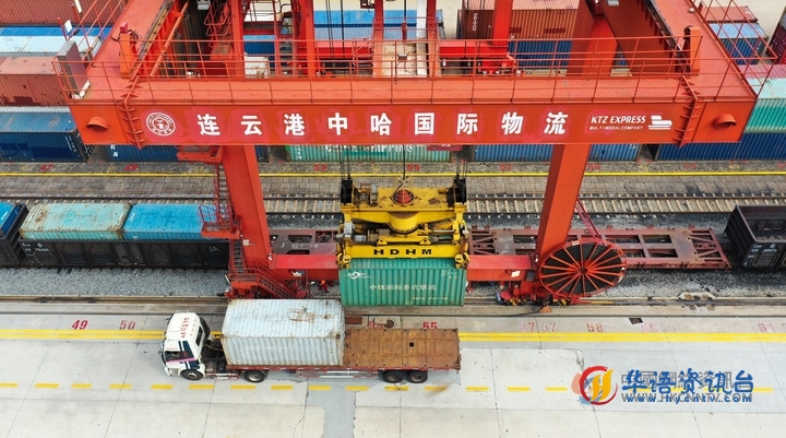 云台山下、黄海之滨,江苏自贸区连云港片区的中哈连云港物流合作基地,每天数以百计的集装箱从这里搭乘中欧班列,驶往中亚。