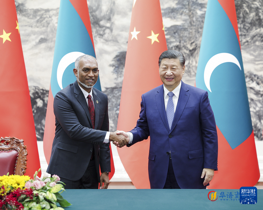 穆伊兹表示,我非常荣幸携多位重要内阁部长对中国进行首次国事访问,成为今年中方接待的首位外国元首,这充分体现了我们双方对发展马中关系的高度重视。马方坚定奉行一个中国政策。坚定相互支持对方维护国家主权独立和领土完整,这是马中关系持续良好发展的坚实基础。今年是习近平主席对马尔代夫进行历史性国事访问十周年。中方为马经济社会发展提供了大量宝贵帮助,马中合作特别是共建“一带一路”,使马尔代夫人民受益良多,马中友谊大桥已经成为两国人民友谊的象征。我此次参访福建期间,亲眼目睹中国发展取得的巨大成就,亲身感受到习近平主席的卓越领导力。马方期待以构建全面战略合作伙伴关系为契机,进一步拓展双边合作新渠道,增加双边关系新内涵,推进高质量共建“一带一路”,推动马中关系取得更多新发展,为两国人民创造更多福祉。欢迎中方为促进人文交流采取的积极措施,期待更多中国游客赴马旅游。马方支持习近平主席提出的全球发展倡议、全球安全倡议、全球文明倡议,愿同中方在国际地区事务中密切沟通协作,加强相互支持。
