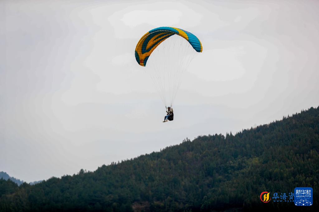 2月16日,游客在贵州省贵阳市开阳县云中君滑翔伞基地体验滑翔伞。