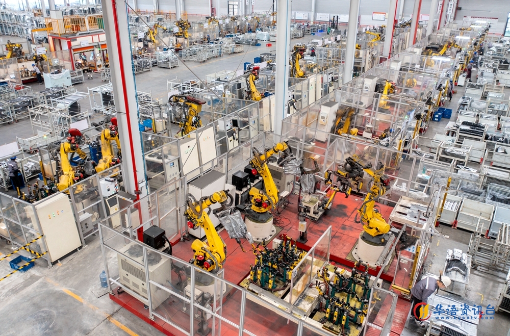 在位于浙江省湖州市长兴经济技术开发区的长兴地通汽车部件有限公司,全自动机器人高速运转生产新能源汽车配件订单产品(2024年1月8日摄,无人机照片)。新华社发(谭云俸摄)