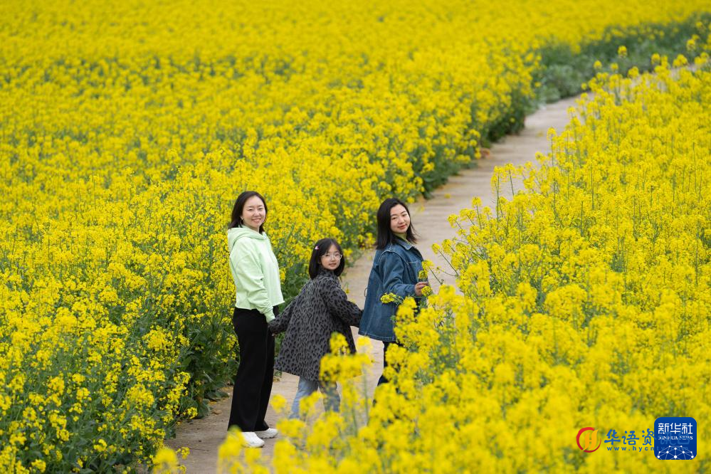 3月17日,在四川省绵阳市安州区秀水镇,游客在油菜花海中游玩。