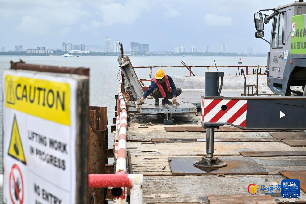 蒙蒙细雨中,工地机器隆隆作响,连接马来西亚柔佛州与新加坡的跨国轻轨项目——柔新捷运系统(RTS)水上段高架的建设工人正在紧锣密鼓地工作。这是记者日前在马南部柔佛州新山市附近项目施工现场看到的景象。