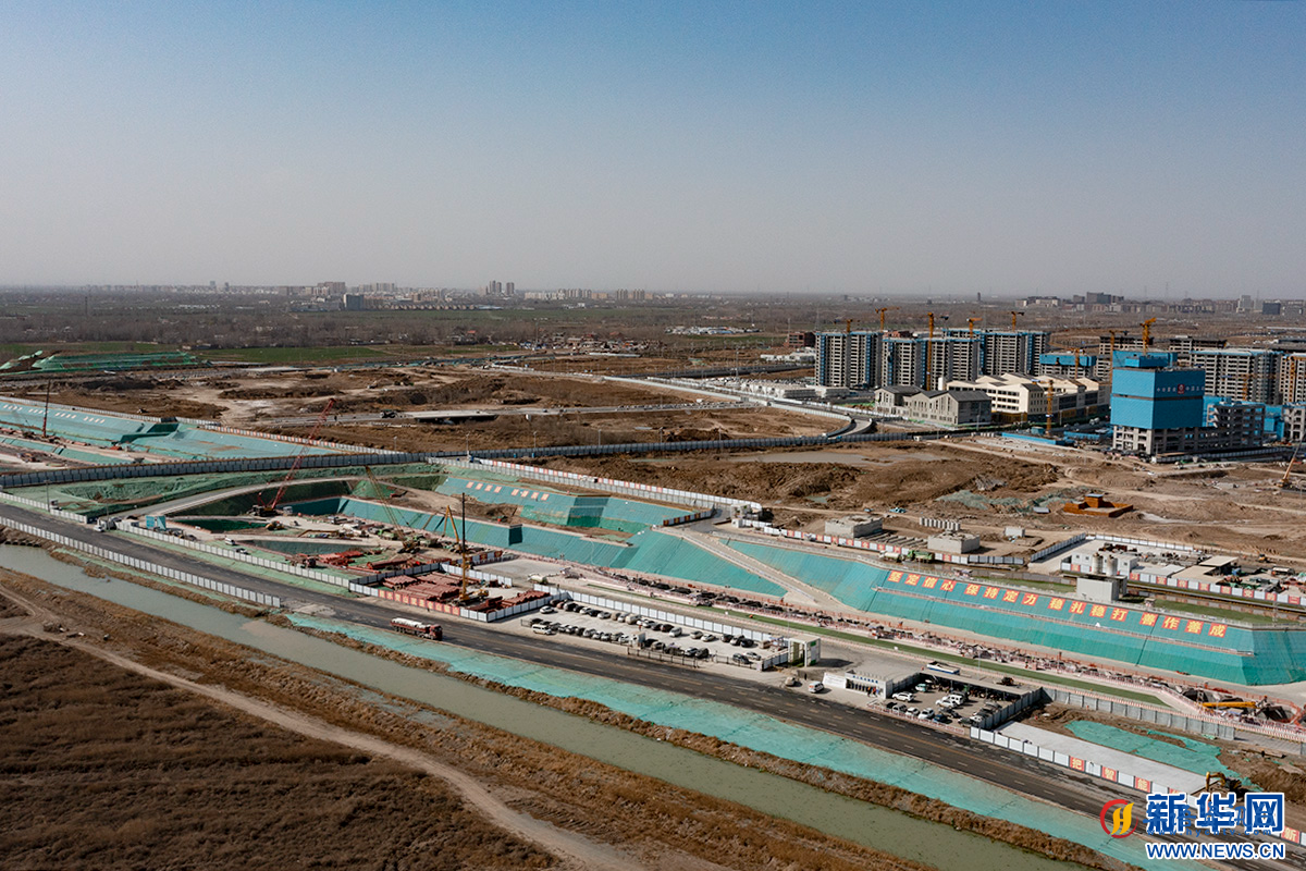 雄安新区城际站及国贸中心项目建设现场塔吊林立。新华网 牛思佳 摄