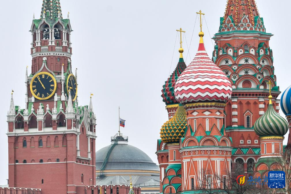 这是3月24日在俄罗斯莫斯科拍摄的降半旗的克里姆林宫。