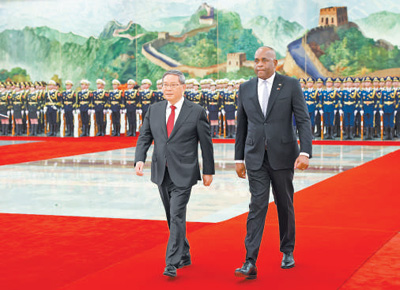 新华社北京3月25日电 国务院总理李强3月25日上午在人民大会堂同来华进行正式访问的多米尼克总理斯凯里特举行会谈。