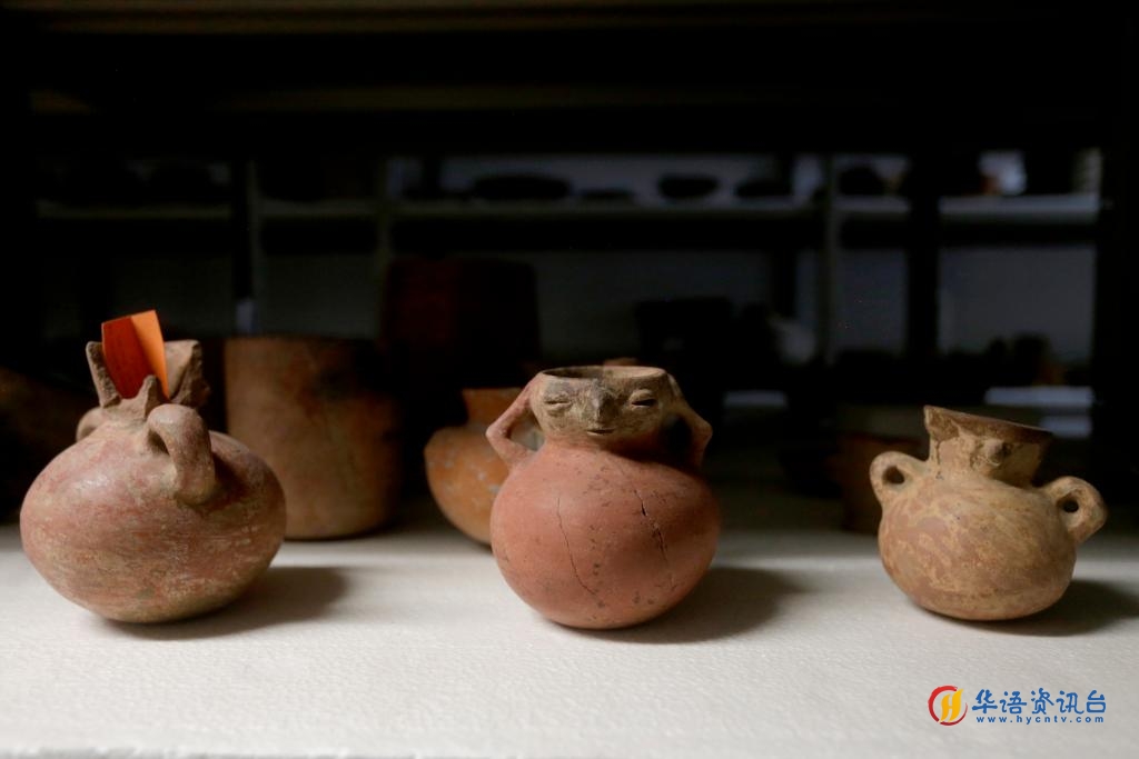 2023年6月8日,在洪都拉斯科潘玛雅遗址国际考古队仓库内拍摄的陶器文物。
