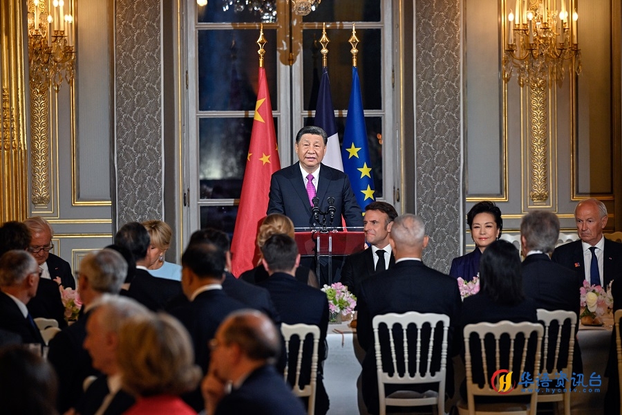 当地时间5月6日晚,国家主席习近平和夫人彭丽媛在巴黎爱丽舍宫出席法国总统马克龙和夫人布丽吉特举行的欢迎宴会。