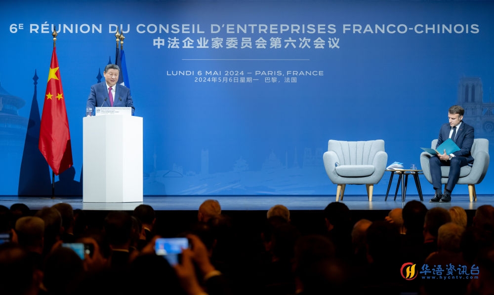 当地时间5月6日下午,国家主席习近平在巴黎同法国总统马克龙共同出席中法企业家委员会第六次会议闭幕式,并发表题为《继往开来,携手开创中法合作新时代》的重要致辞。新华社记者 翟健岚 摄