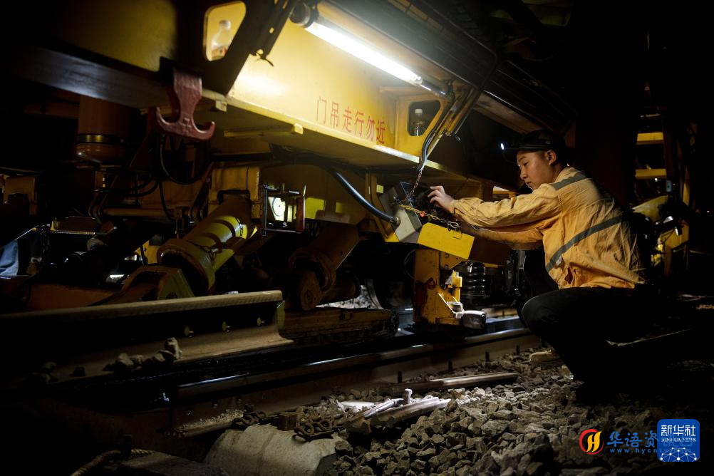 5月14日深夜,铁路工人操纵大修列车对沪昆铁路沪杭段进行机械化大修换枕施工作业。