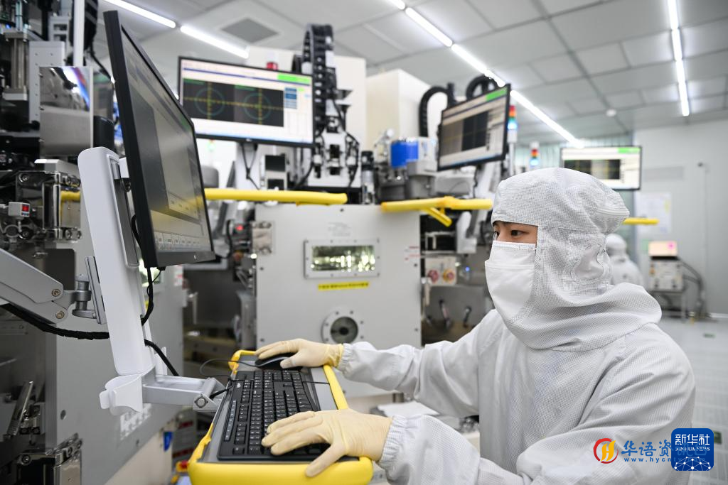 在苏州清越光电科技股份有限公司蒸镀车间,生产人员在操作设备(5月15日摄)。该公司为国家级专精特新“小巨人”企业,产业化成果曾荣获国家制造业单项冠军产品称号。