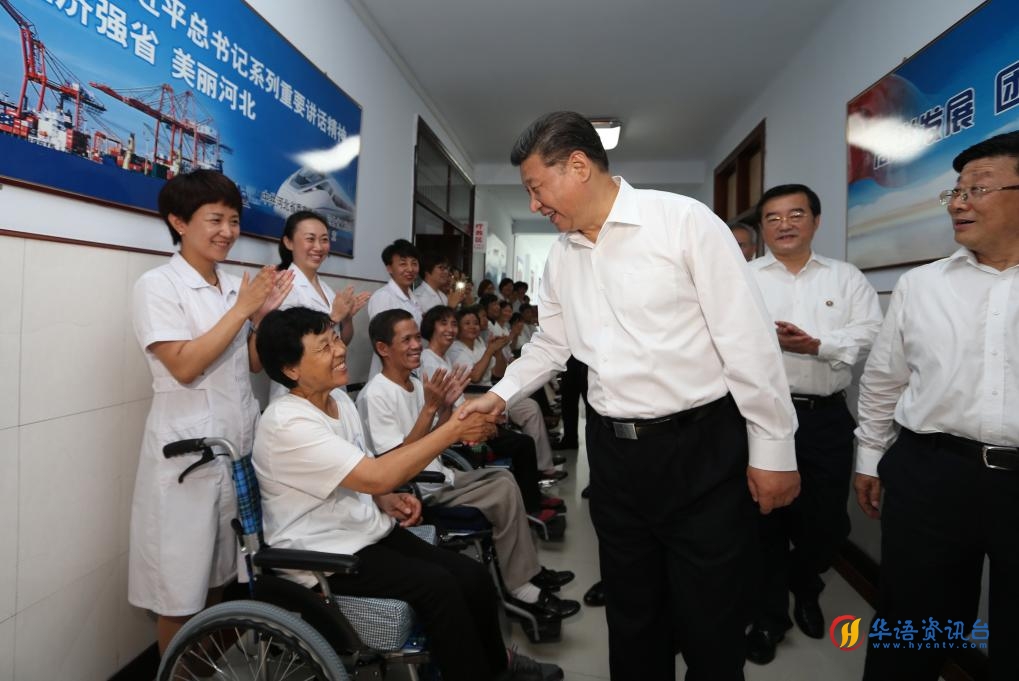 2016年7月28日,习近平总书记在唐山市截瘫疗养院看望慰问截瘫伤员。新华社记者 兰红光 摄