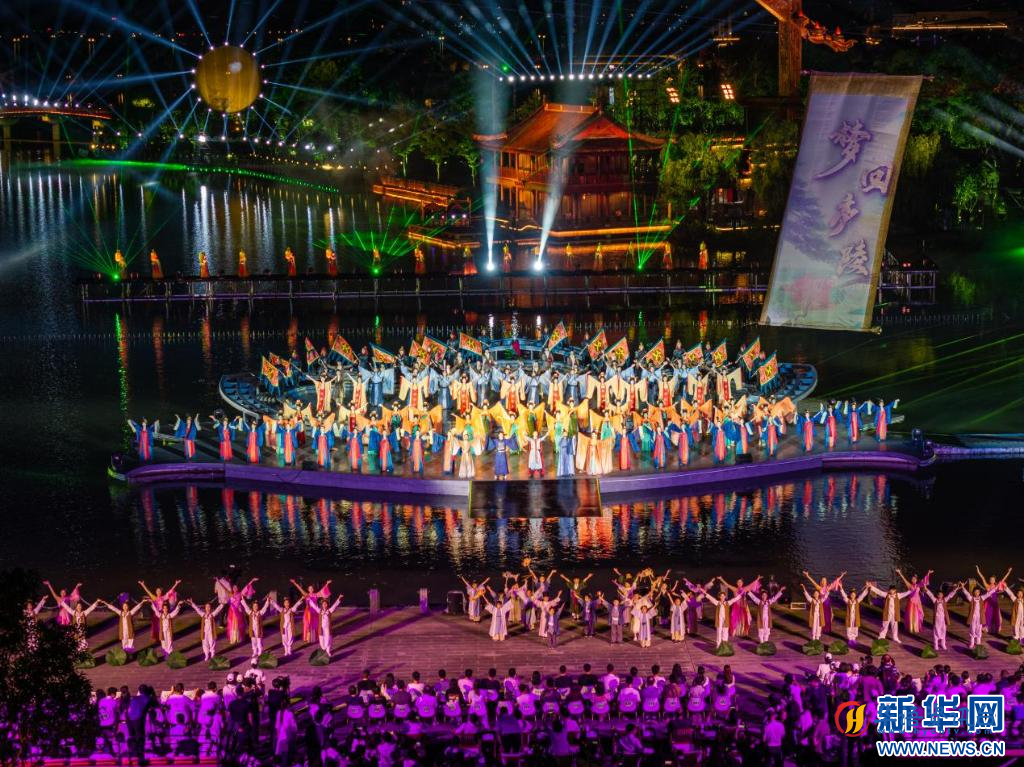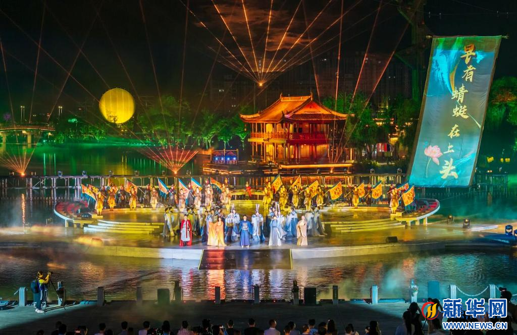 江西吉安首届庐陵文化生态旅游节期间,一场精彩的国潮表演在吉州区的后河·梦回庐陵景区开演,吸引众多游客驻足欣赏庐陵先贤风采。由五位戏剧演员扮演的庐陵先贤许和子、欧阳修、杨万里、文天祥、解缙先后登场,他们或乘舟,或驾鹤,或策马扬鞭穿越时空“重回”庐陵母亲的怀抱。(王晓震 王中庆)