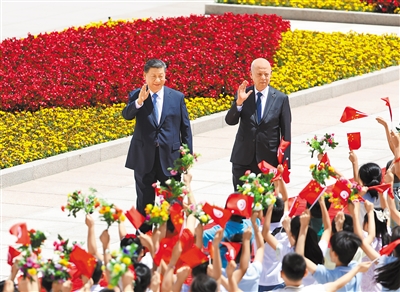 习近平指出,中国和突尼斯是好朋友、好兄弟。建交60年来,无论国际风云如何变幻,中突双方始终相互尊重、平等相待、彼此支持,谱写了发展中国家风雨同舟、守望相助的生动篇章。巩固好、发展好中突关系,符合两国人民的根本利益和共同期待。中方愿同突方一道,赓续传统友谊,深化各领域交流合作,推动中突关系迈上新台阶。今天我们宣布建立中突战略伙伴关系,必将开辟两国关系更加美好的未来。