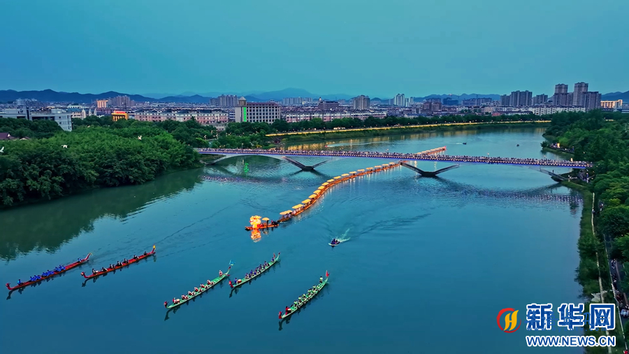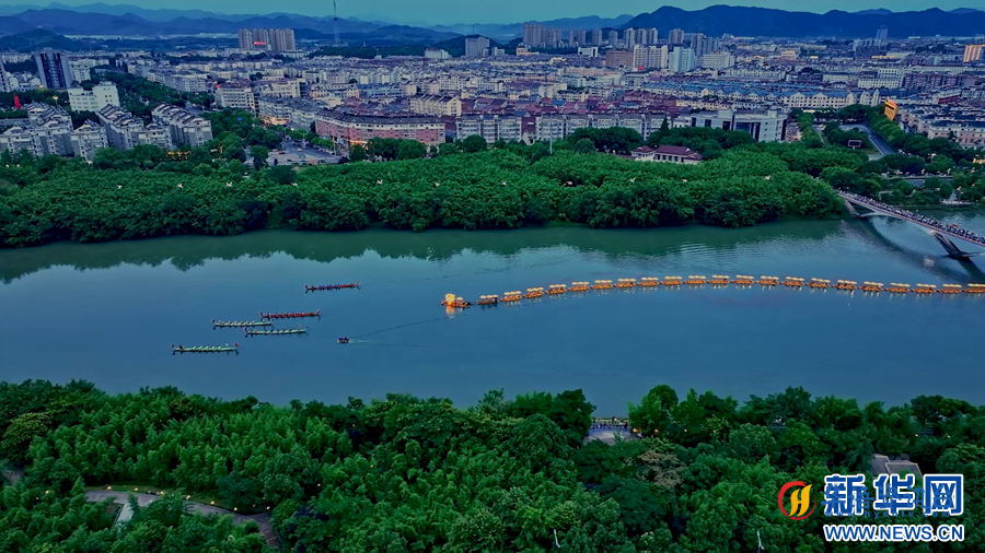 端午节前夕,在安徽省宁国市西津河上,一场别开生面的龙舟表演将节日的氛围瞬间拉满。