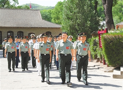 6月17日至19日,中央军委政治工作会议在陕西延安召开。中共中央总书记、国家主席、中央军委主席习近平出席会议并发表重要讲话。这是17日下午,习近平带领军委一班人和各部门各单位主要负责同志瞻仰王家坪革命旧址。 |