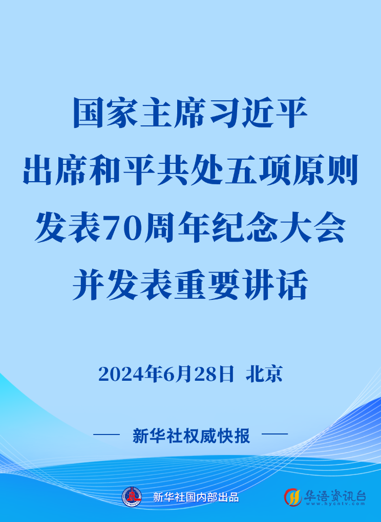 6月28日上午,国家主席习近平在北京人民大会堂出席和平共处五项原则发表70周年纪念大会并发表重要讲话。