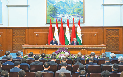 本报杜尚别7月5日电 (记者程是颉、李博文)当地时间7月5日下午,国家主席习近平同塔吉克斯坦总统拉赫蒙在杜尚别总统府会谈后共同会见记者。