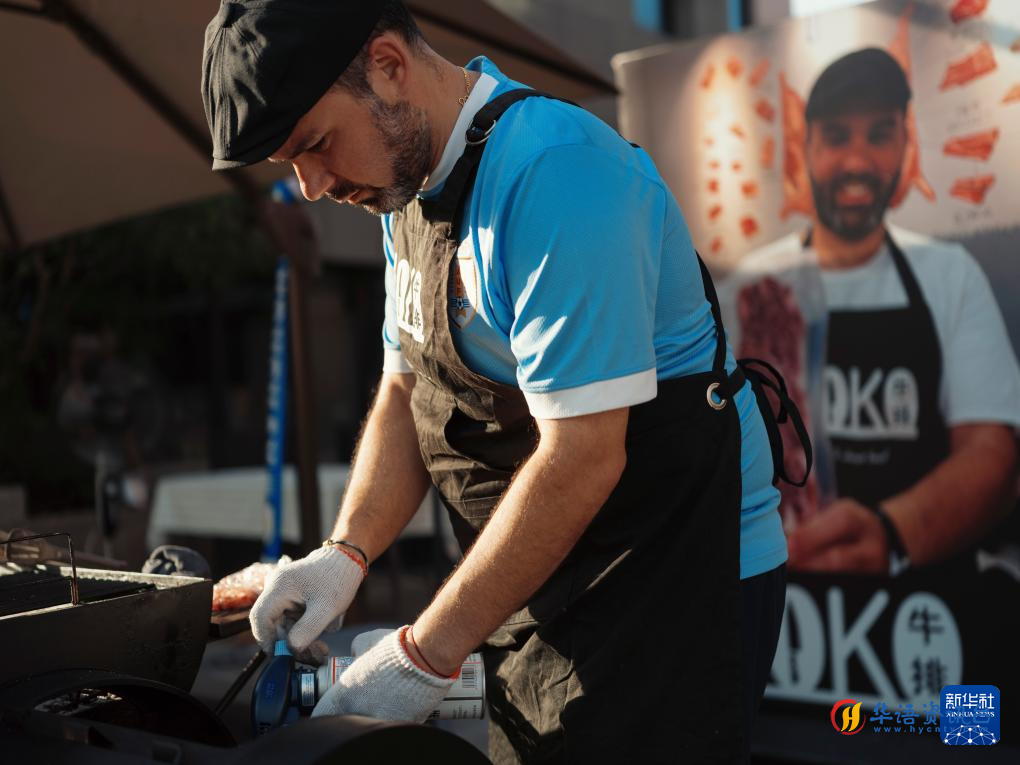 7月19日,在芜湖古城,马丁在当天举行的啤酒节上制作牛排。