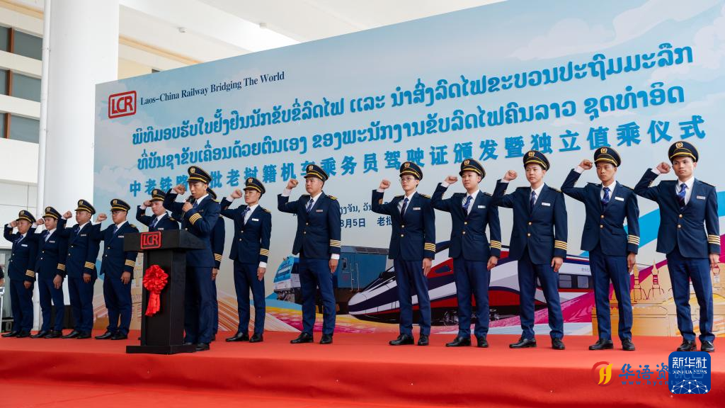 新华社万象8月6日电(记者马淮钊 赵旭)中老铁路机车驾驶证颁发暨独立乘务首发仪式5日在中老铁路万象站举行,中老铁路火车首次实现由老挝籍火车司机独立值乘。