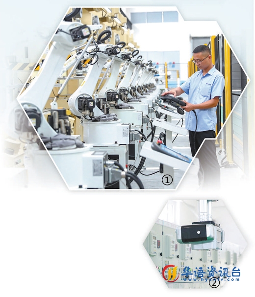 图①:四川华蓥华蓥山经开区,企业员工在智能车间调试新安装的机器人。 |