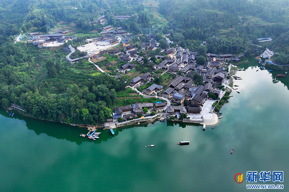 河湾山寨坐落于酉水河畔,已有600余年历史。如今,当地正着力发挥山水自然资源禀赋,结合地域特色和历史文化资源,保护原乡自然特色的同时,从细节处打造,让看得见山、望得见水的河湾山寨,成为人们诗意栖居、寻觅乡愁的地方。新华网发(陈碧生 摄)