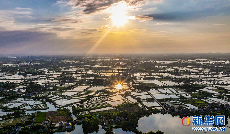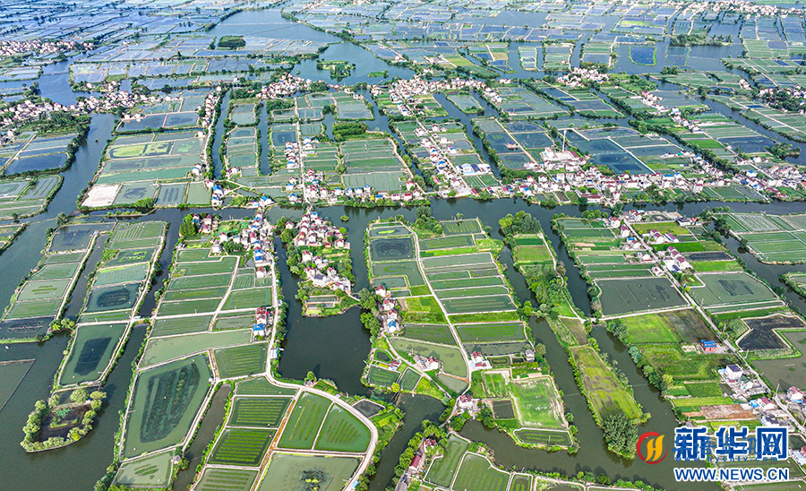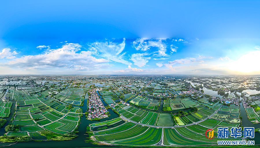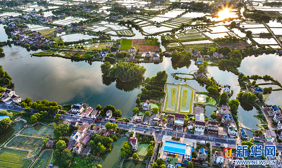 夏末秋初,安徽省马鞍山市当涂县乌溪镇水田纵横交错,星罗棋布的村舍遍布其中,天蓝水清岸美,构成了一幅美丽的江南水乡田园生态画卷。