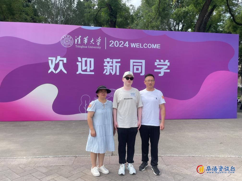 图为张艺瑄(左二)在父母陪同下来清华大学报到。新华社发