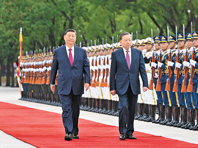 8月19日,中共中央总书记、国家主席习近平在北京人民大会堂同来华进行国事访问的越共中央总书记、国家主席苏林举行会谈。这是会谈前,习近平在人民大会堂东门外广场为苏林举行欢迎仪式。 |