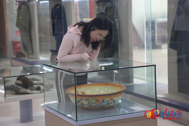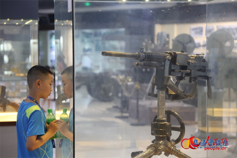 在纪念馆内,来自北京的游客正在参观实物。人民网 李龙摄