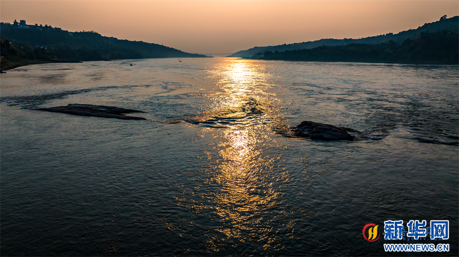 江面荡起金色鱼鳞似的波纹。新华网发(石先彬 摄)