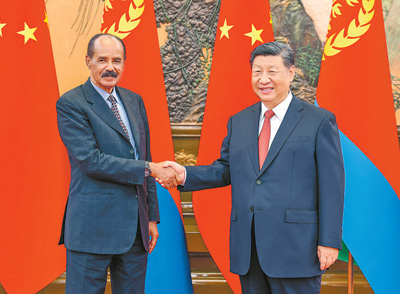 9月2日下午,国家主席习近平在北京人民大会堂会见来华出席中非合作论坛北京峰会的厄立特里亚总统伊萨亚斯。 |