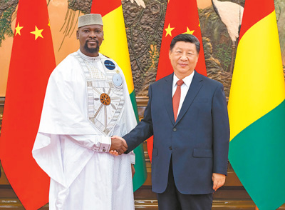 习近平指出,几内亚是新中国在撒哈拉以南非洲第一个建交国,下个月将迎来两国建交65周年。65年来,双方坚持相互尊重,支持对方走独立自主道路;坚持平等互利,开展不附加政治条件的务实合作;坚持守望相助,在对方遭遇困难时给予相互支持。中方愿同几方一道,培育好弘扬好中几传统友谊,继续在涉及彼此核心利益和重大关切问题上坚定相互支持。共同落实好这次峰会即将推出的重大举措,加强基础设施、资源开发、乡村发展和减贫、医疗卫生等领域合作,助力几内亚将资源优势转化为发展动能,让中几全面战略合作伙伴关系更好惠及两国人民。