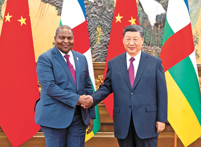习近平指出,中国同中非共和国虽然远隔重洋,但始终携手并肩、心心相印。中方赞赏中非在涉及中国核心利益问题上长期给予坚定支持,将继续支持中非维护国家独立和安全稳定的努力。欢迎中非用好我在此次中非合作论坛北京峰会上宣布的新举措,深化两国经贸合作,推动基础设施建设同产业融合发展,不断提升两国各领域合作水平,将两国战略伙伴关系打造成中国同非洲以及全球南方国家关系的典范。