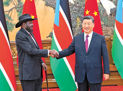 习近平指出,中国是最先同南苏丹建交的国家之一。建交13年来,双方政治互信牢固,各领域合作富有成果。相互尊重、真诚合作是中南关系的底色,携手同行、共谋发展是中南关系的未来。构建内涵丰富、充满活力的中南关系,符合两国人民共同期待和长远利益。中方愿同南方分享发展经验和机遇,继续实施教育技术等项目,加强石油、矿业、农业等领域合作,助力南苏丹经济多元化。中方愿同南苏丹落实好此次中非合作论坛北京峰会各项成果,推动双边合作走深走实。