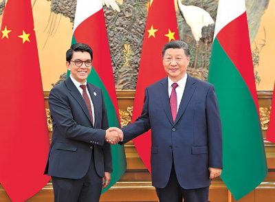习近平指出,中马之间虽然远隔重洋,但两国人民相知相亲。建交52年来,双方始终坚持真诚友好、平等相待、互利共赢。特别是近年来,两国秉持建交初心,不断加强政治互信,深化各领域合作,两国人民的获得感日益增强。中方支持马达加斯加独立自主探索符合本国国情的现代化道路,愿同马方加强交流合作,拓宽务实合作,继续实施好杂交水稻技术援助项目,探讨加强矿业、新能源、蓝色经济、防灾减灾等领域合作。中方支持鲁班工坊、孔子学院在马达加斯加发展,助力马方培养更多现代化高素质人才。加强青年、文化、地方等人文交流,不断夯实两国友好民意基础。
