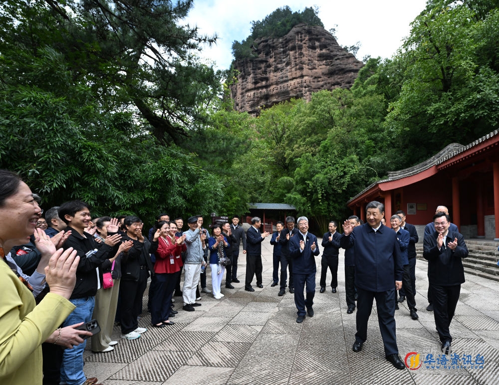 10日下午至11日上午,习近平总书记先后来到陕西省宝鸡市和甘肃省天水市考察调研。在宝鸡市,习近平考察了宝鸡青铜器博物院、渭河生态公园,了解当地加强文物保护利用和开展渭河生态保护治理等情况。在天水市,习近平考察了伏羲庙、麦积区南山花牛苹果基地、麦积山石窟,了解当地推动文化遗产保护传承、发展特色现代山地果业等情况。